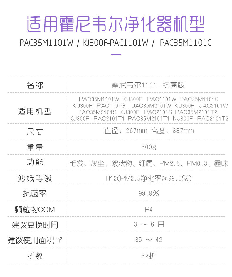[takecare培康旗舰店净化,加湿抽湿机配件]培康适配Honeywell霍尼韦尔空月销量0件仅售249元
