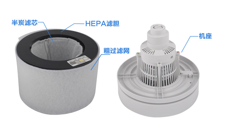 • 工作原理:活性炭 负离子 HEPA技术
