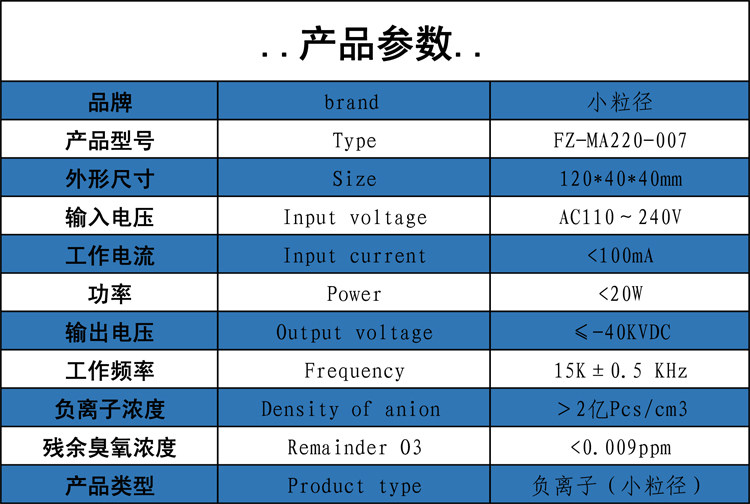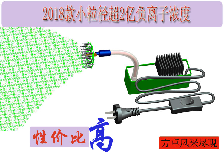 温馨提醒:市面上所有采用什么铍铜金针而不产生臭氧的大功率负离子发生器基本都是糊弄人的,不诋毁竞争对手,不贬低同行,不辜负客户,做好自己的服务;让对手敬佩,让同行认可,让客户满意。目前负离子浓度测试仪最大量程才2亿,竟然还出来5亿,为了夸大数据而不择手段,这是奸商行为,请大家整套买下来或者单独买他们铍铜金针头对比便知,具体如何对比咨询客服,本产品支持15天无理由退货。金针不适合做释放头其原因有2点:第一点就是负离子并不是真正大功率负离子也并没有商家承诺的能达到2亿,大家可以买AIC仪器进行测试,也可以向我们借仪器来测试便知;第二点经过测试,采用铍铜金针头只要高压超过30KVDC,放电啸叫声都非常大了,更何况他们是40KVDC以上。金针优点耐脏耐油脂不静音因为有臭氧所以适合家用去除甲醛,油漆味道,去除异味,碳纤维优点静音但不耐脏耐油脂适合保健养生、净化空气,钨金优点耐脏耐油脂适合保健养生、净化空气,噪音适中,是目前为止理想的释放材料。本产品功率大,负离子浓度高,请与其他家电保持60cm以上距离,以免损坏给您带来不必要的损失,详情请看说明书,新版升级版小粒径负离子上市了。新款介绍在下面,新版质保一年,性价比好,一年之内出现不工作直接换新,两年以内出现不工作按照购买价格6成换新,三年以内出现不工作按照购买价格8成换新,基本用个3-5年没有问题的。