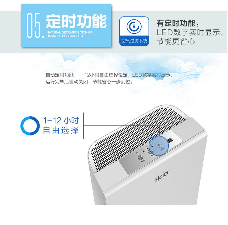 • 功能:定时除花粉除颗粒物除甲醛除烟除尘杀菌加氧
