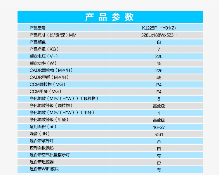 • 甲醛CADR值:45立方米/小时