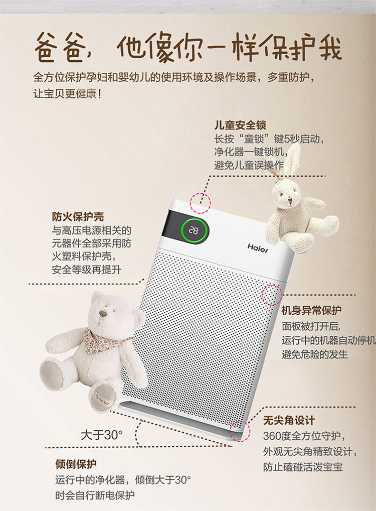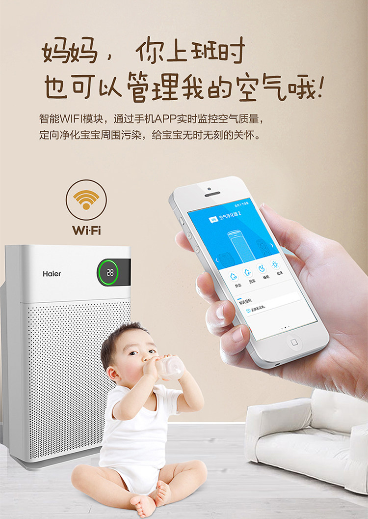 [空气炸锅品牌店空气净化,氧吧]haier海尔母婴空气净化器家用KJ月销量0件仅售5999元