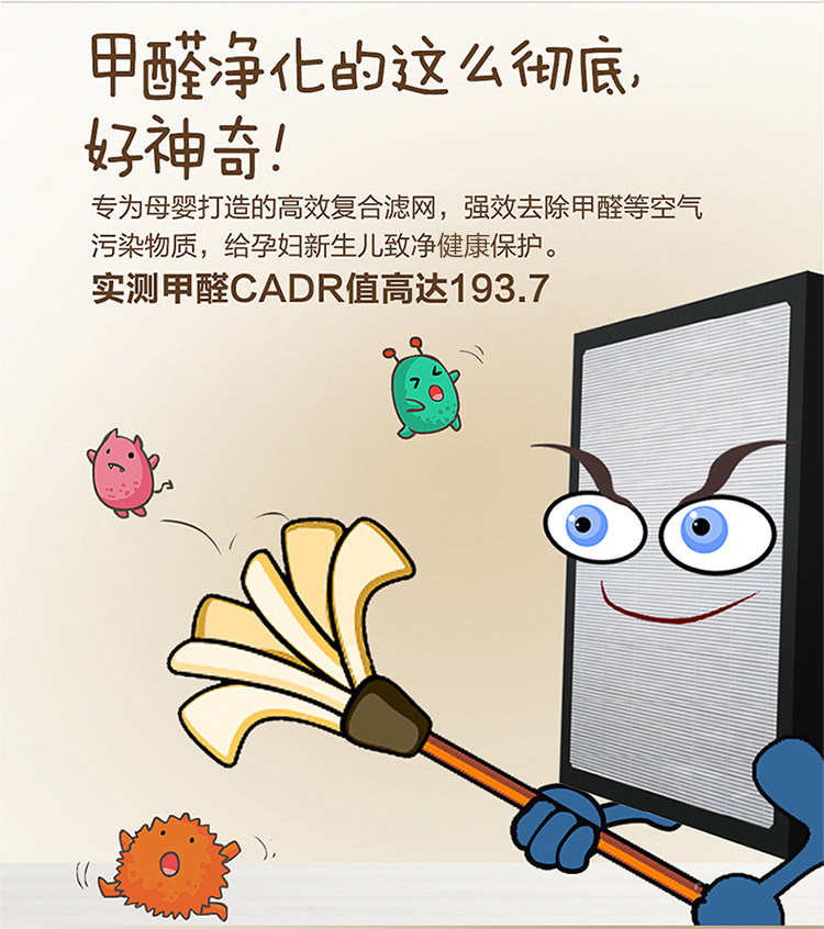 • 甲醛CADR值:190立方米/小时