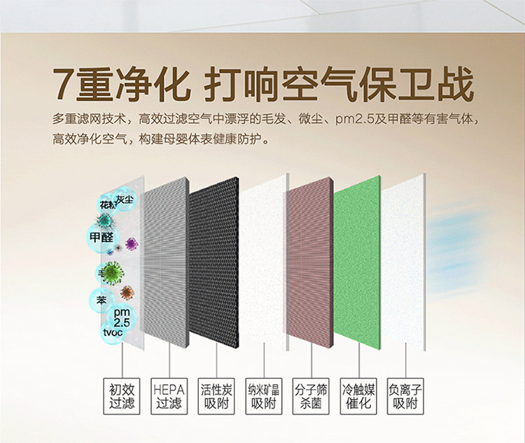 • 工作原理:活性炭 负离子 HEPA技术