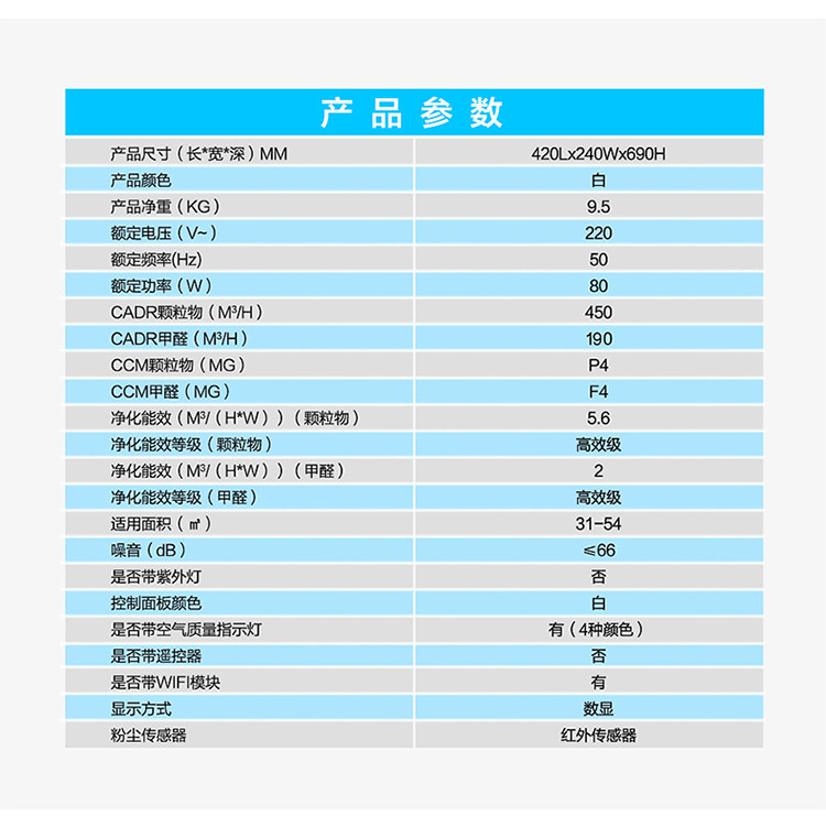 • 空气净化能效等级:高效级