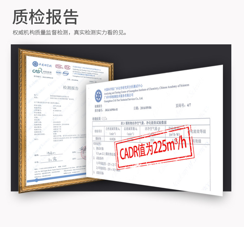 • 颗粒物CADR值:225立方米/小时