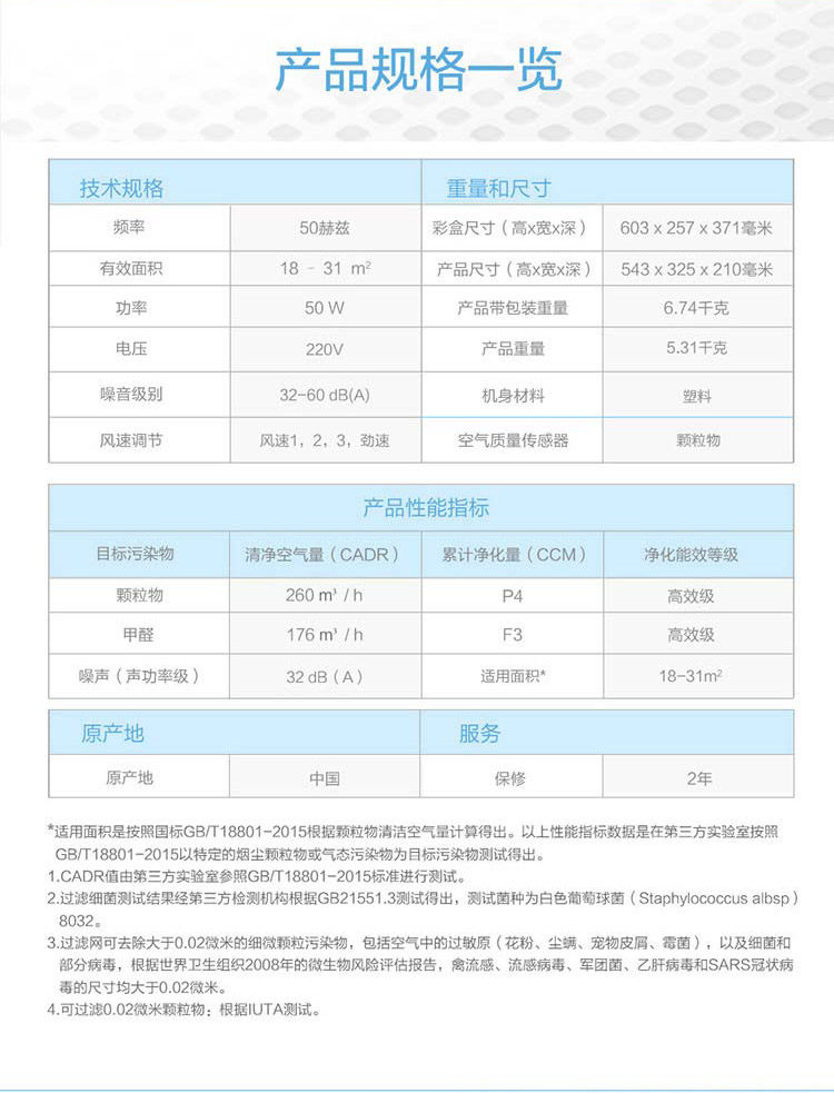 • 空气净化能效等级:高效级