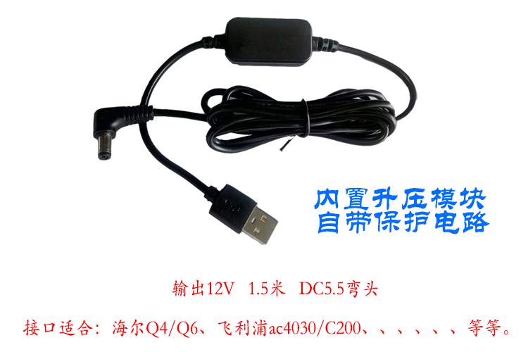 海尔车载空气净化器先科行车记录仪USB电源线5V转12V飞利浦DC圆头