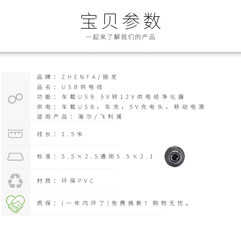 使用方法:圆孔插净化器,USB接口插点烟器,移动电源,手机充电头5V2A/2.1A接口。