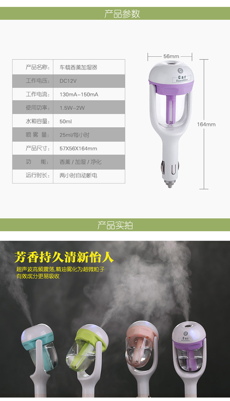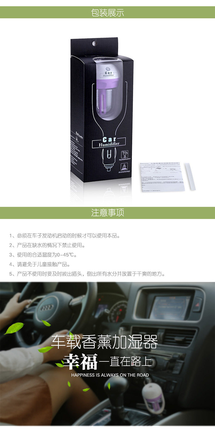 • 颜色分类:车载香薰加湿器-粉色 车载香薰加湿器-蓝色 车载香薰加湿器-绿色 车载香薰加湿器-紫色 2代车载加湿器带1个USB口-黑色 2代车载加湿器带1个USB口-蓝色