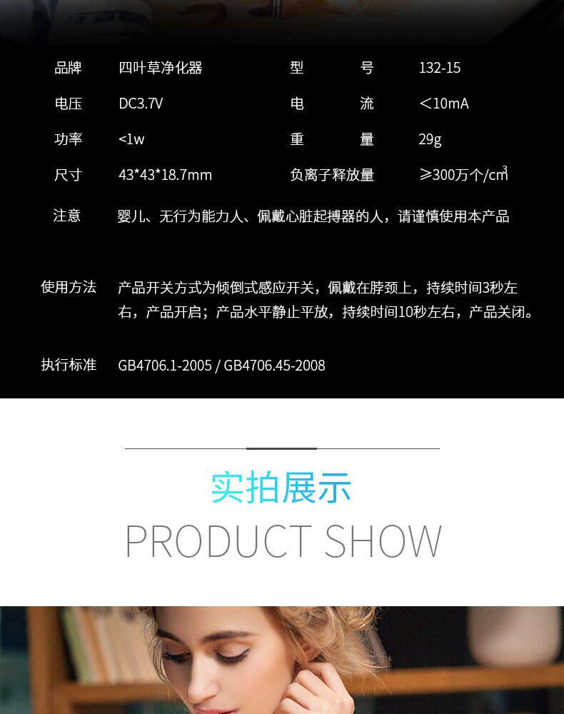 四叶草迷你空气净化器随身便携式负离子颈项链挂脖式防二手烟神器