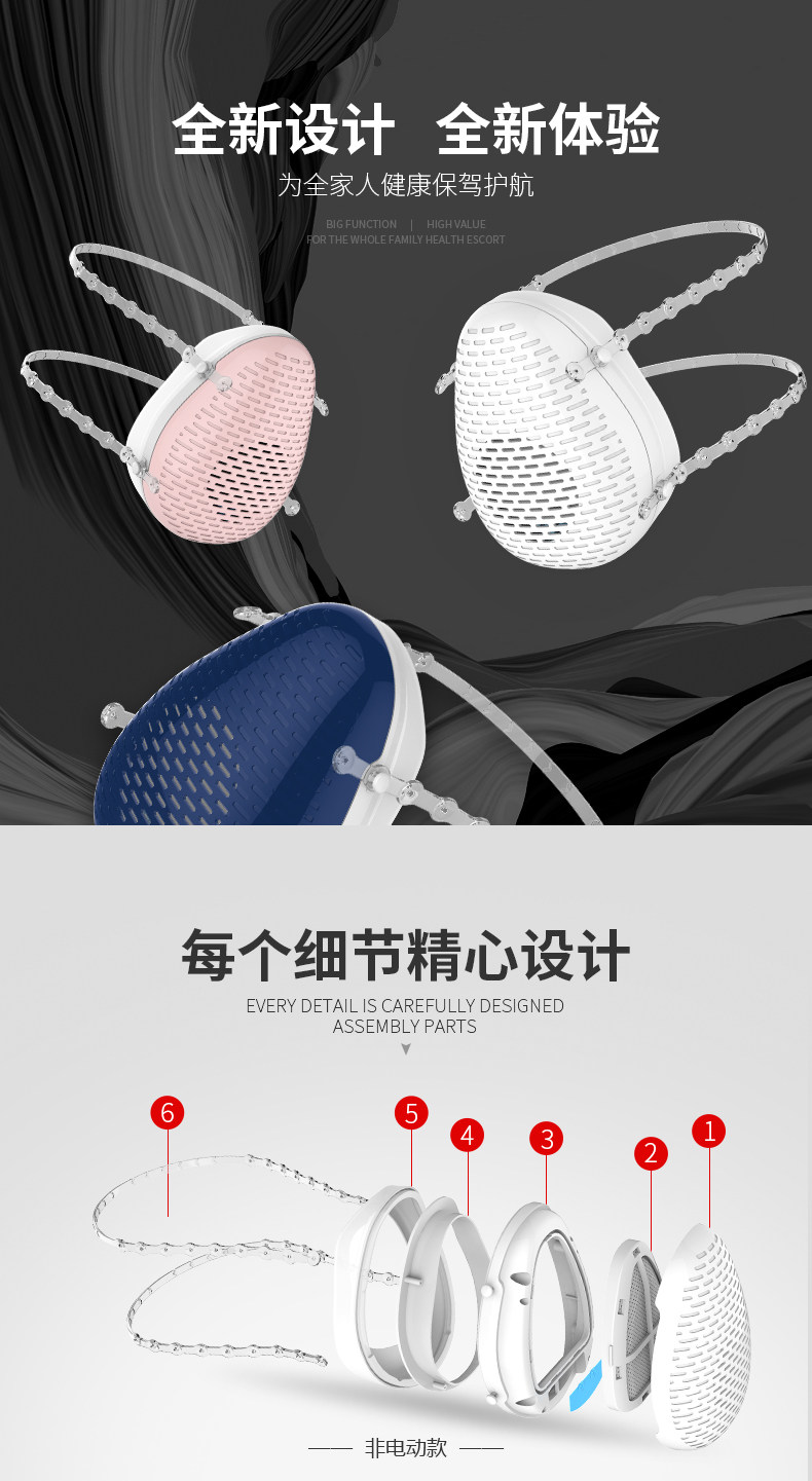 • 颜色分类:象牙白(非电动款 珊瑚粉(非电动款 深海蓝(非电动款 象牙白(电动送风款 珊瑚粉(电动送风款 深海蓝(电动送风款 滤芯一盒5片