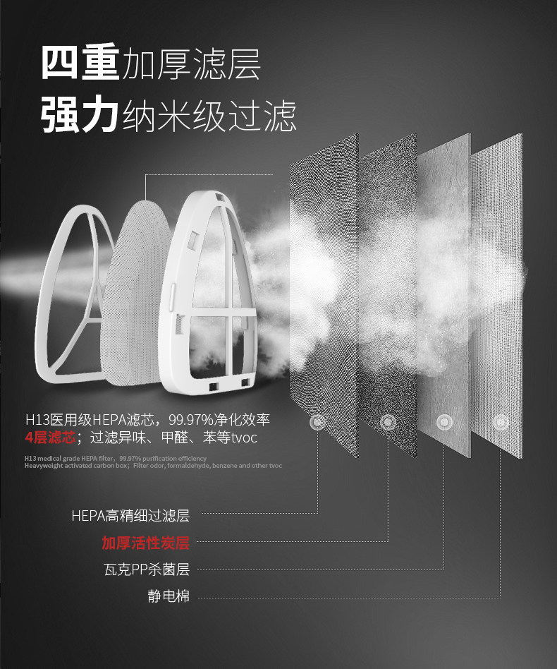 • 工作原理:HEPASilent专利技术 活性炭 HEPA技术