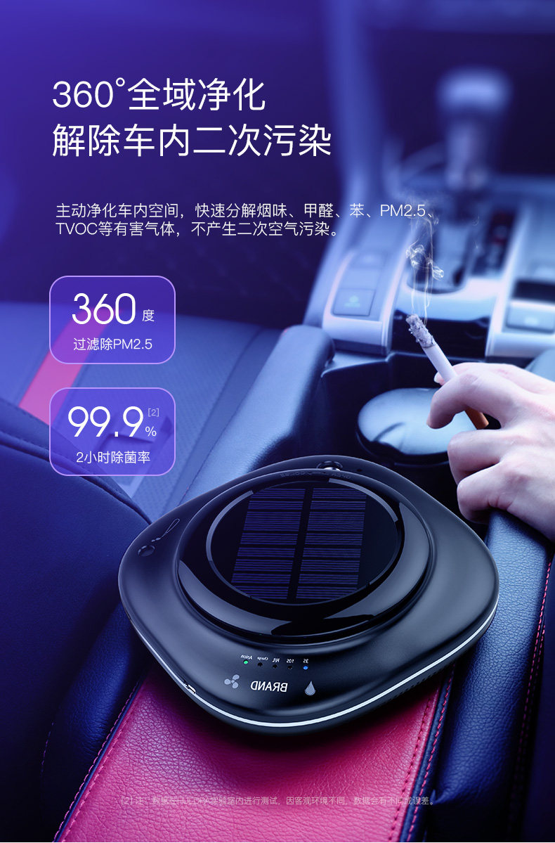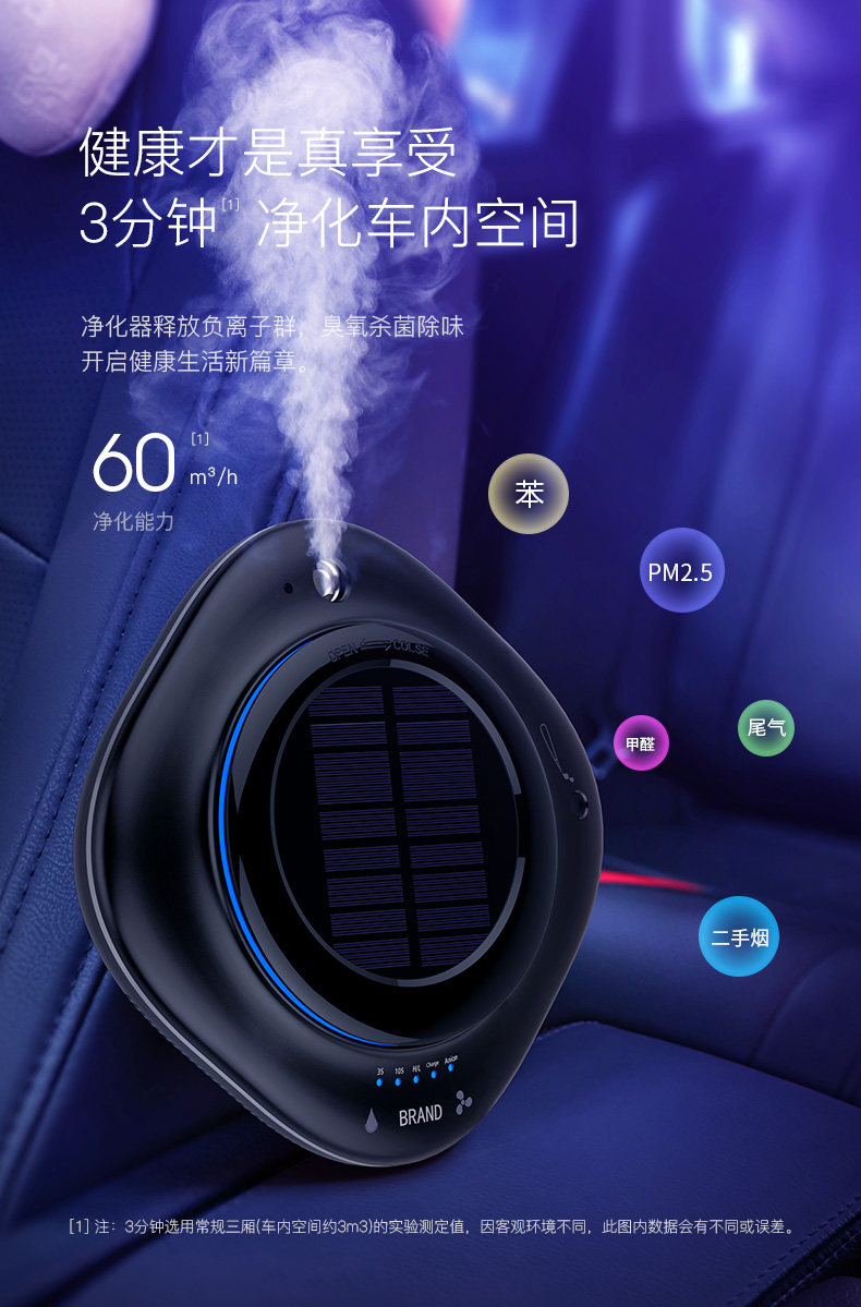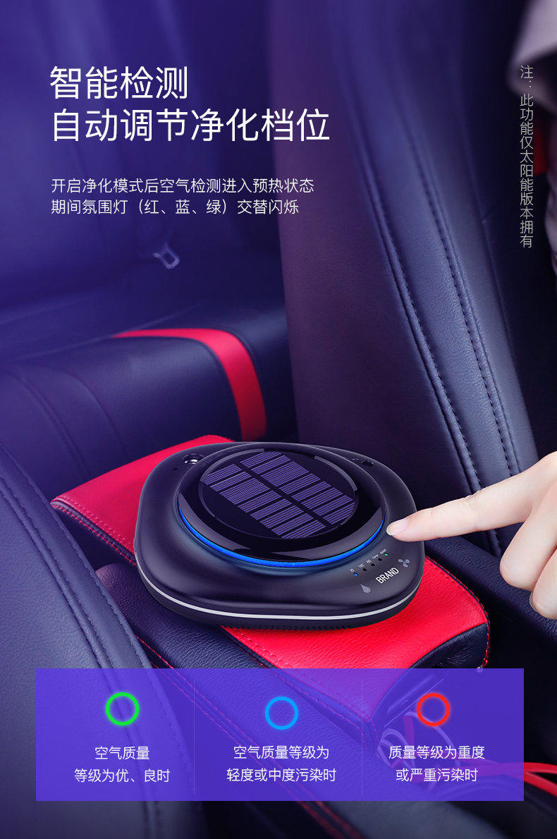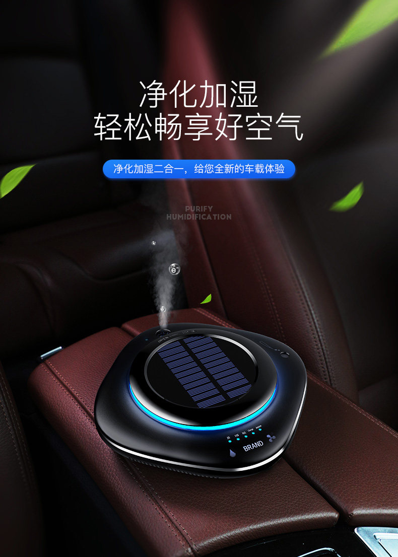 车载cy002空气净化器太阳能车用消除甲醛pm2.5异味香薰负离子加湿