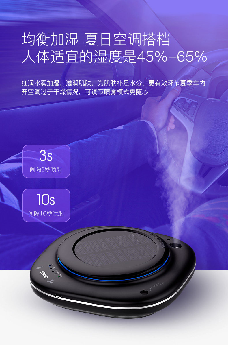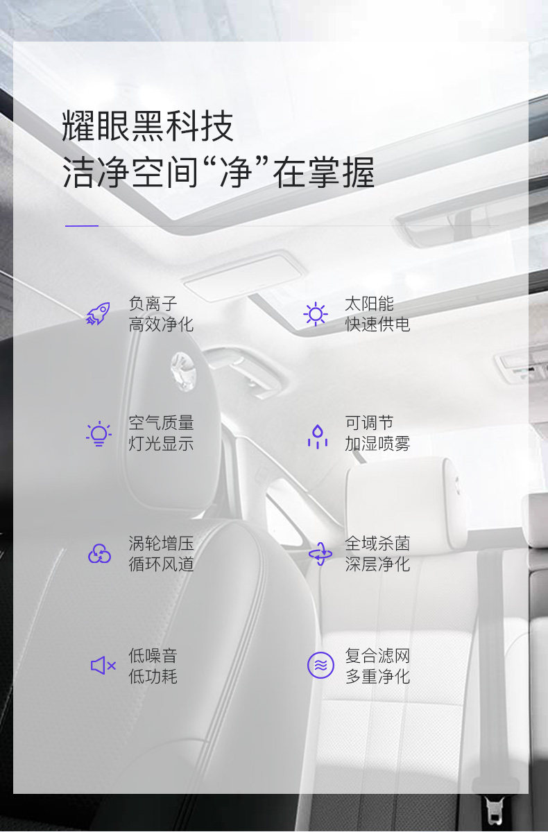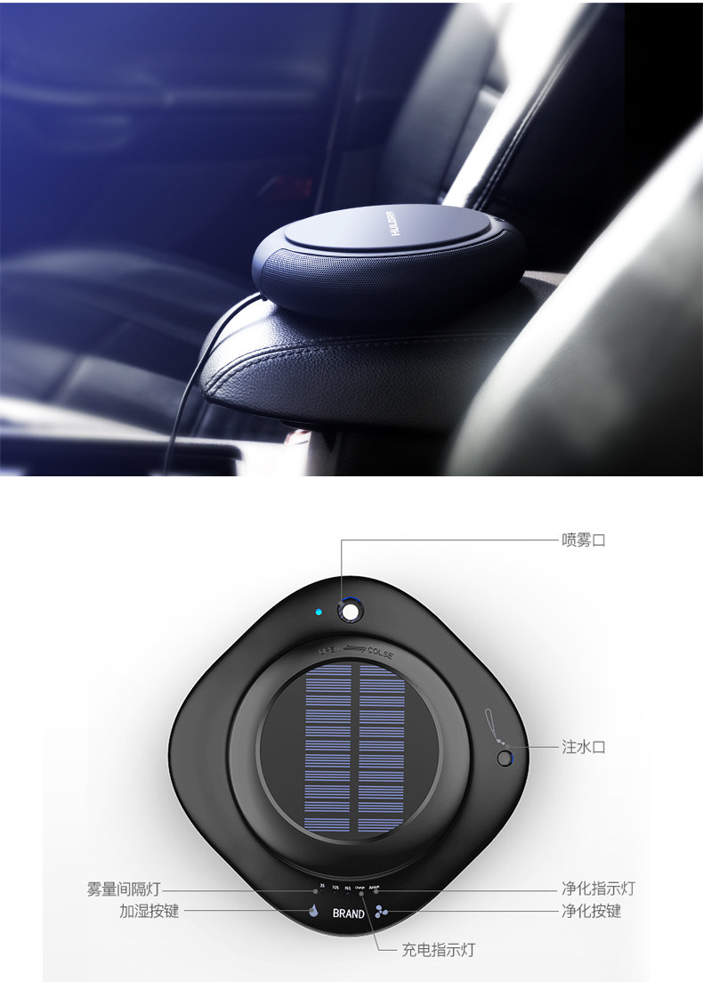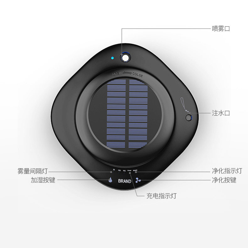车载cy002空气净化器太阳能车用消除甲醛pm2.5异味香薰负离子加湿