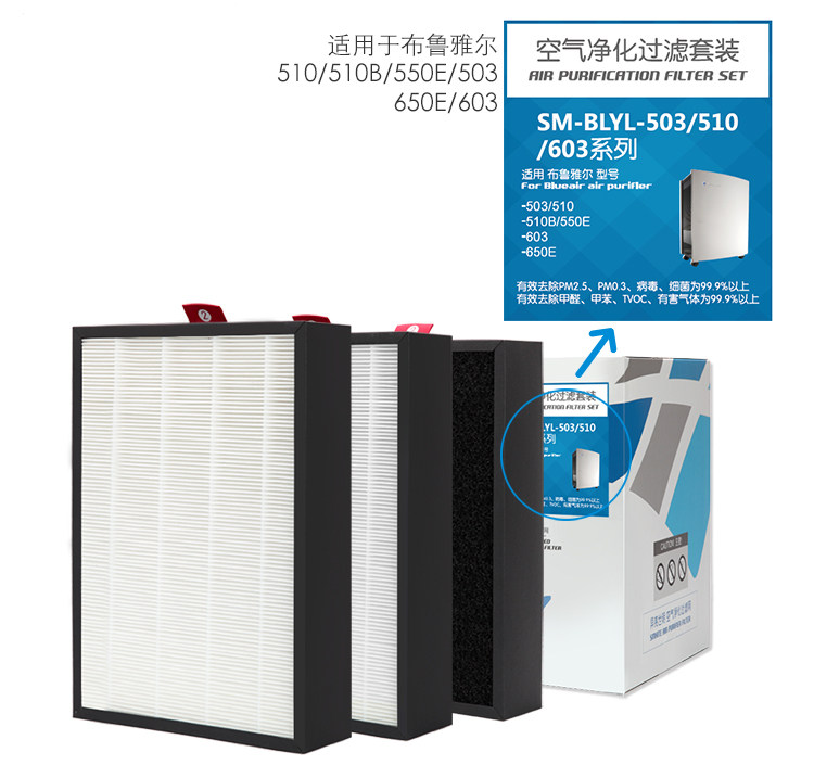 适用布鲁雅尔空气净化器滤网503/510/510B/550E/603/650E滤芯套装