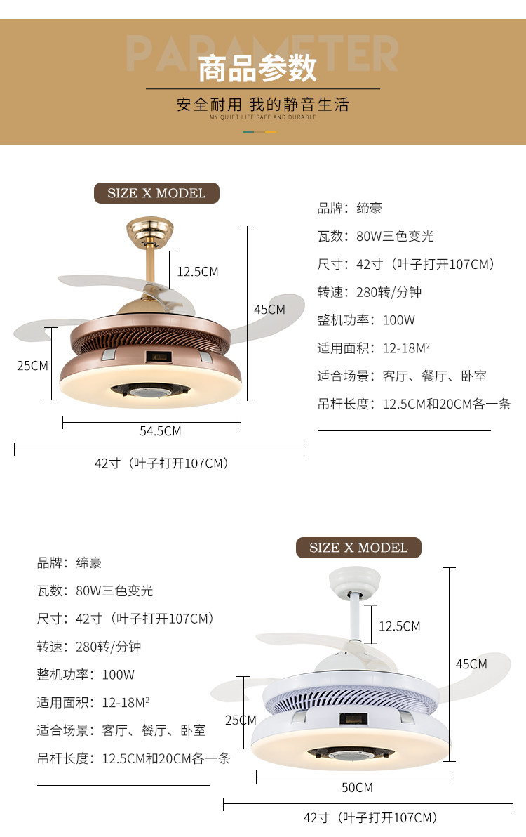 • 颜色分类:MPJ8001象牙白—42寸三色变光 MPJ8001香槟金—42寸三色变光