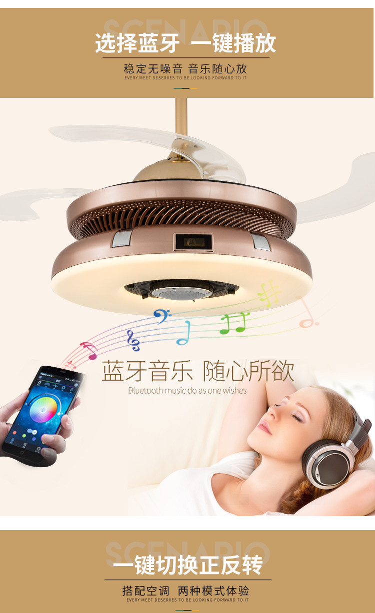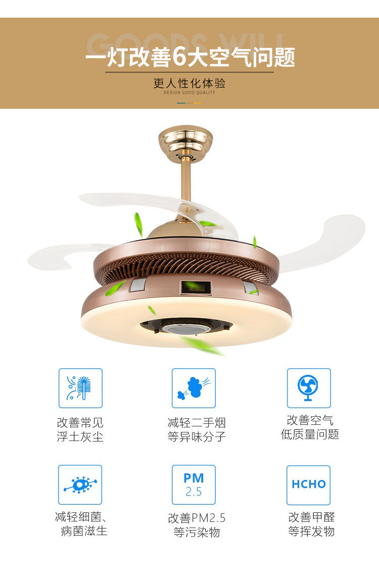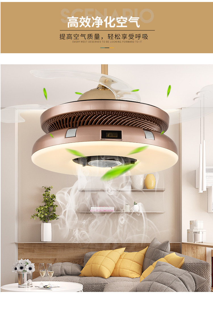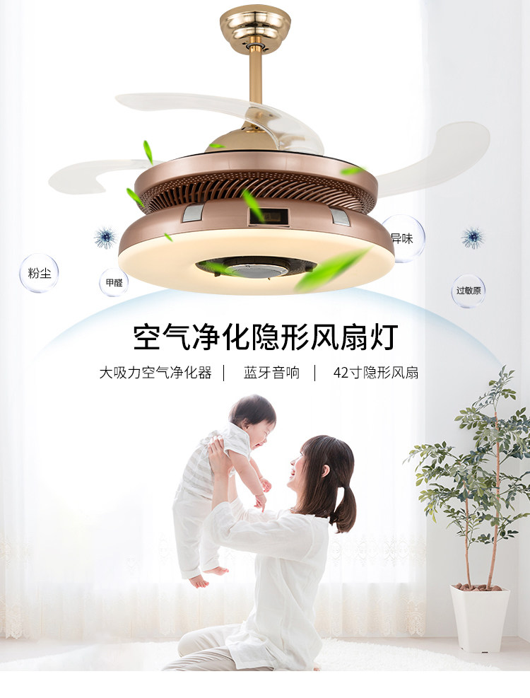 隐形风扇灯棋牌室空气净化器吸烟灯麻将室抽烟灯带蓝牙餐厅吊扇灯