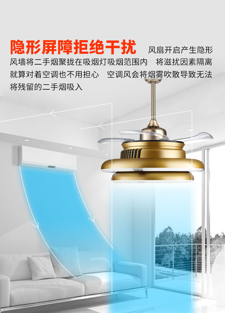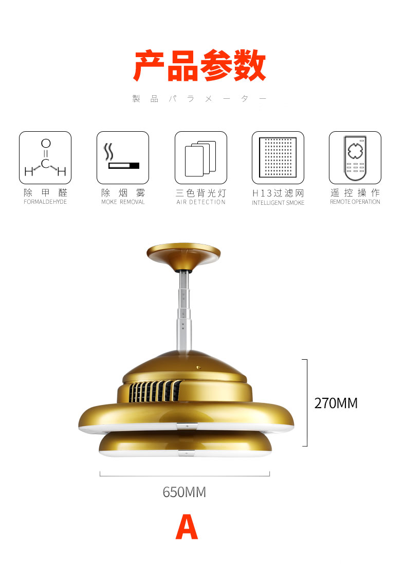 WDP麻将馆吸烟灯棋牌室空气净化器抽烟机家用吸烟宝烟雾led除烟宝