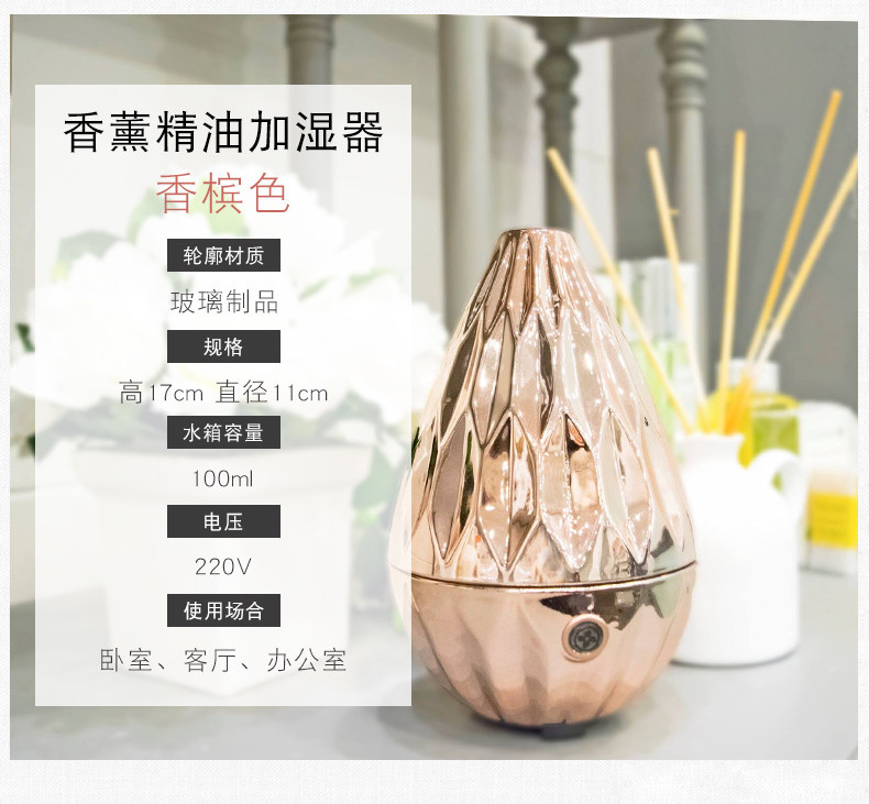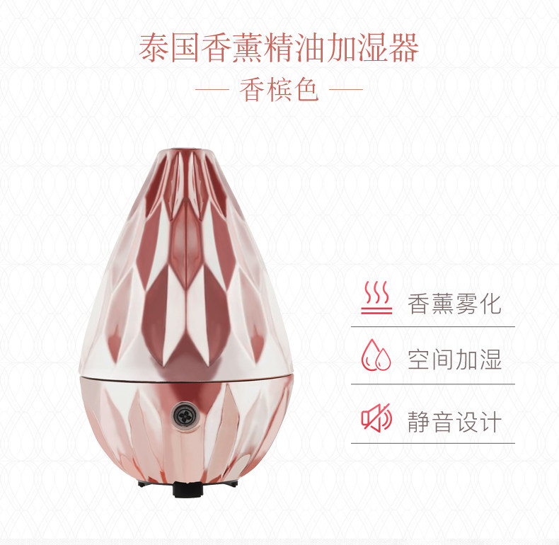 • 熏香工具单品:泰国静音加湿香薰灯香槟色