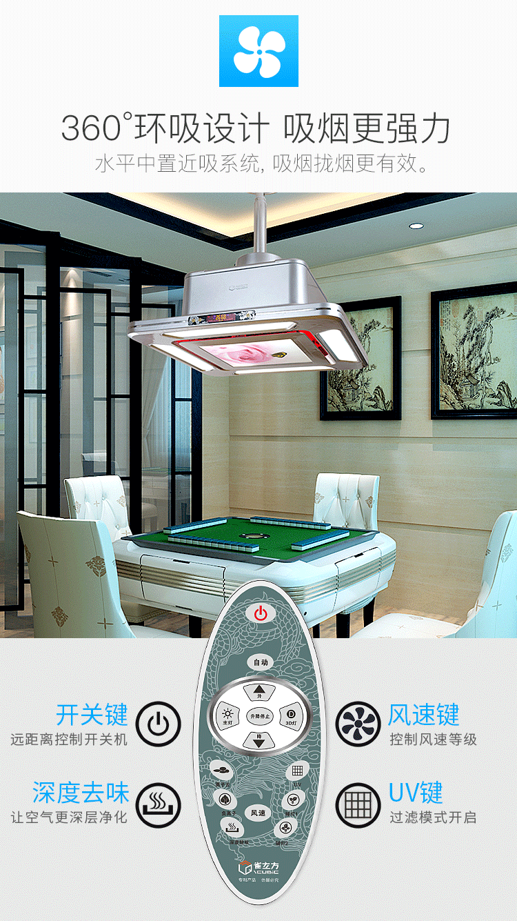 雀立方麻将室棋牌室麻将机空气净化器吸烟灯麻将灯抽烟机吸烟宝
