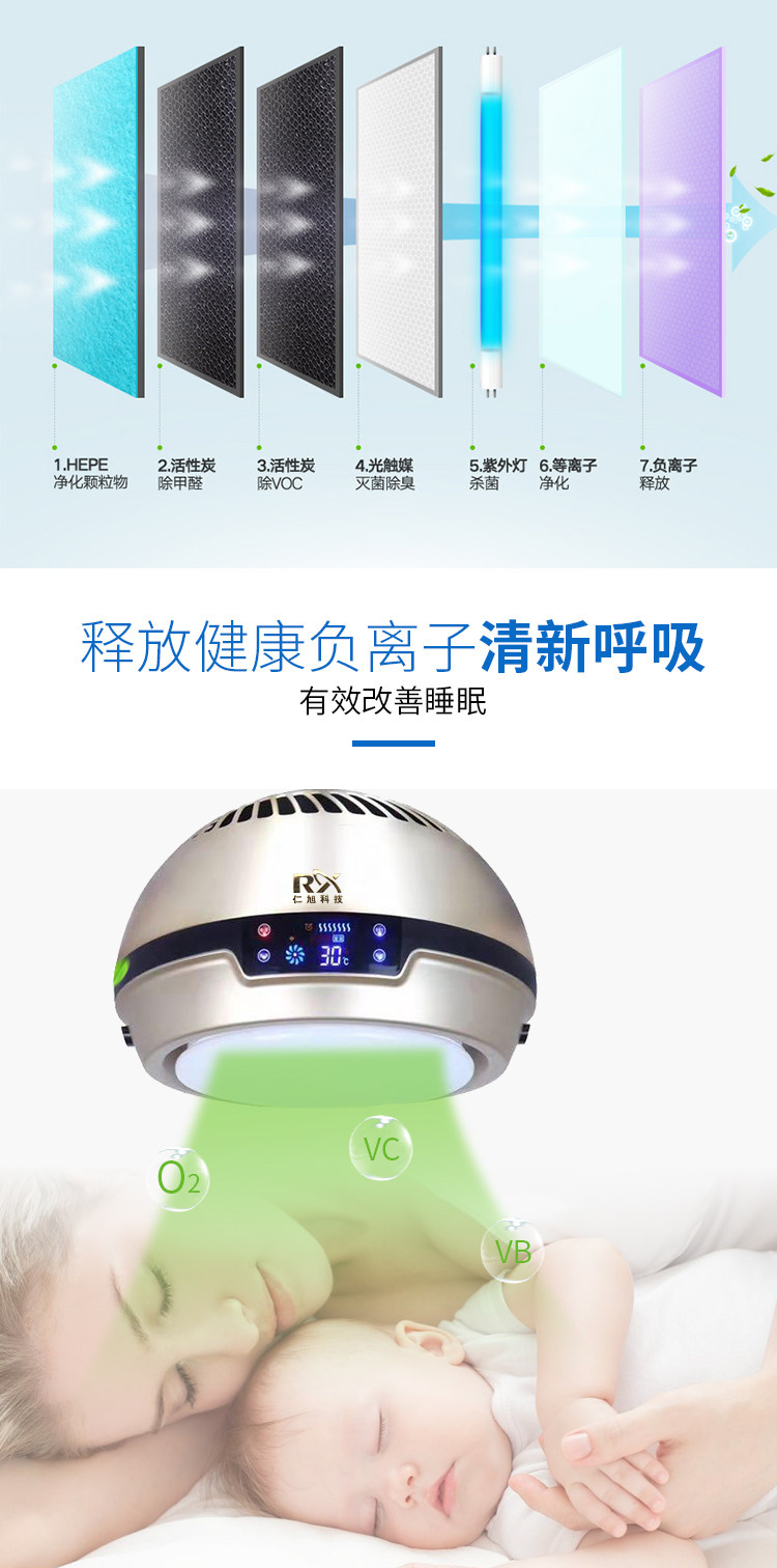 • 功能:定时 除花粉 除颗粒物 除甲醛 除烟除尘 除雾霾 除菌, 负离子 除菌