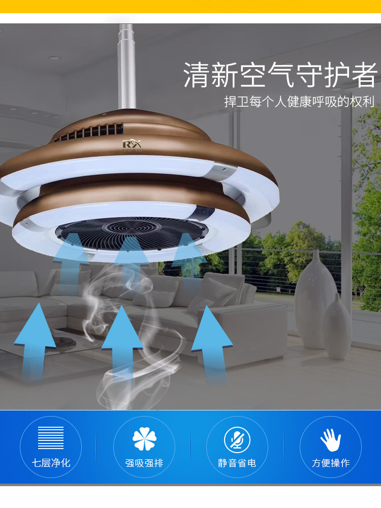 棋牌室空气净化器吸抽排烟灯麻将机房馆全自动会所家用宝升降吊灯