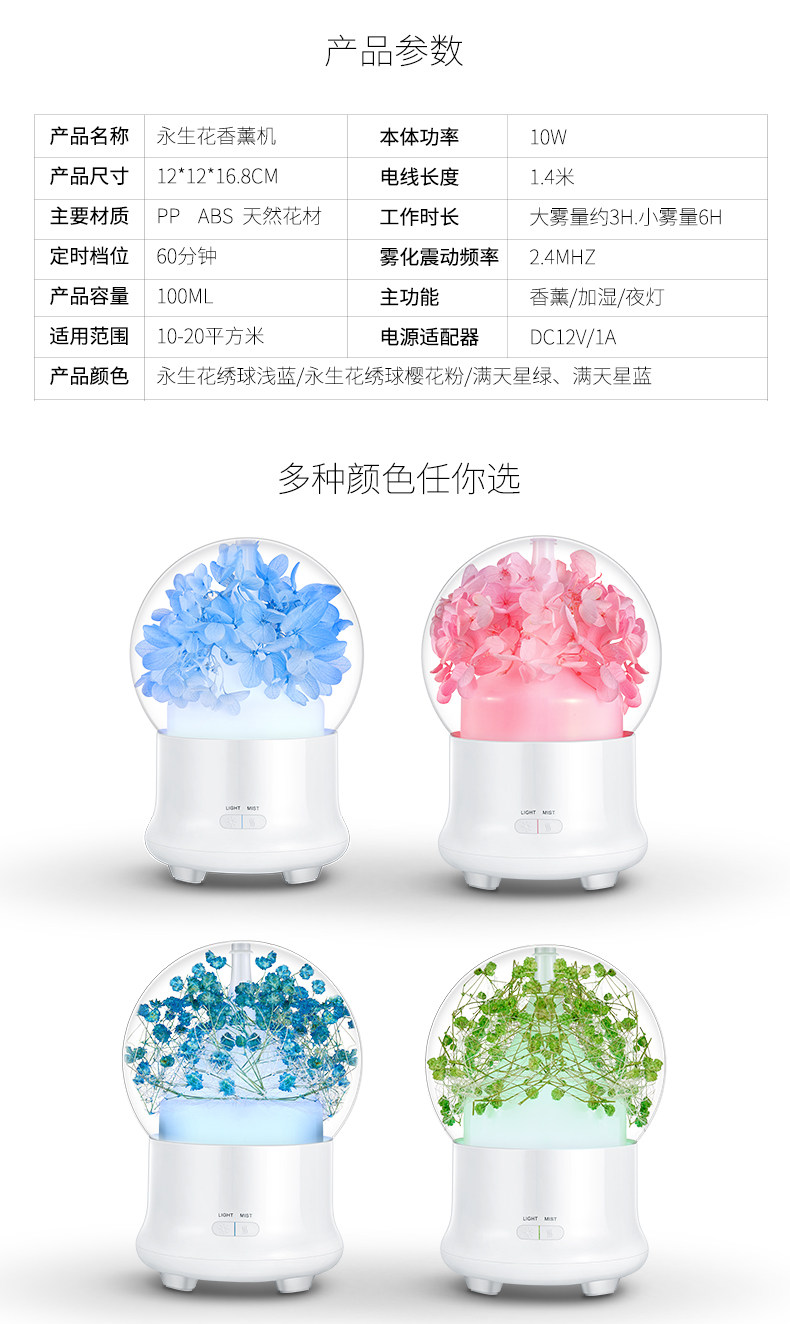 • 颜色分类:永生锈球花粉色【送两瓶精油】 永生锈球花蓝色【送两瓶精油】 满天星蓝色【送两瓶精油】 满天星绿色【送两瓶精油】