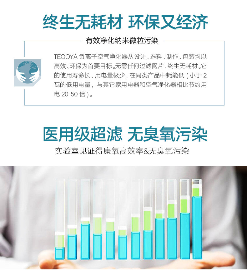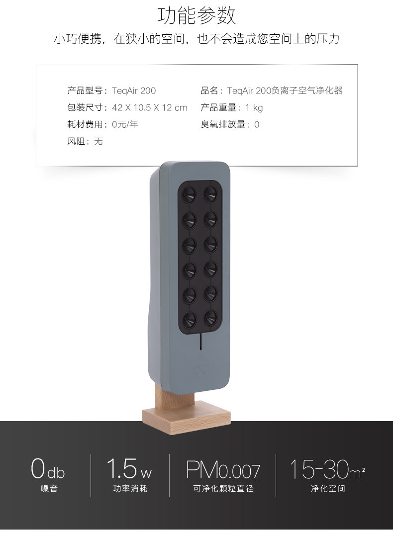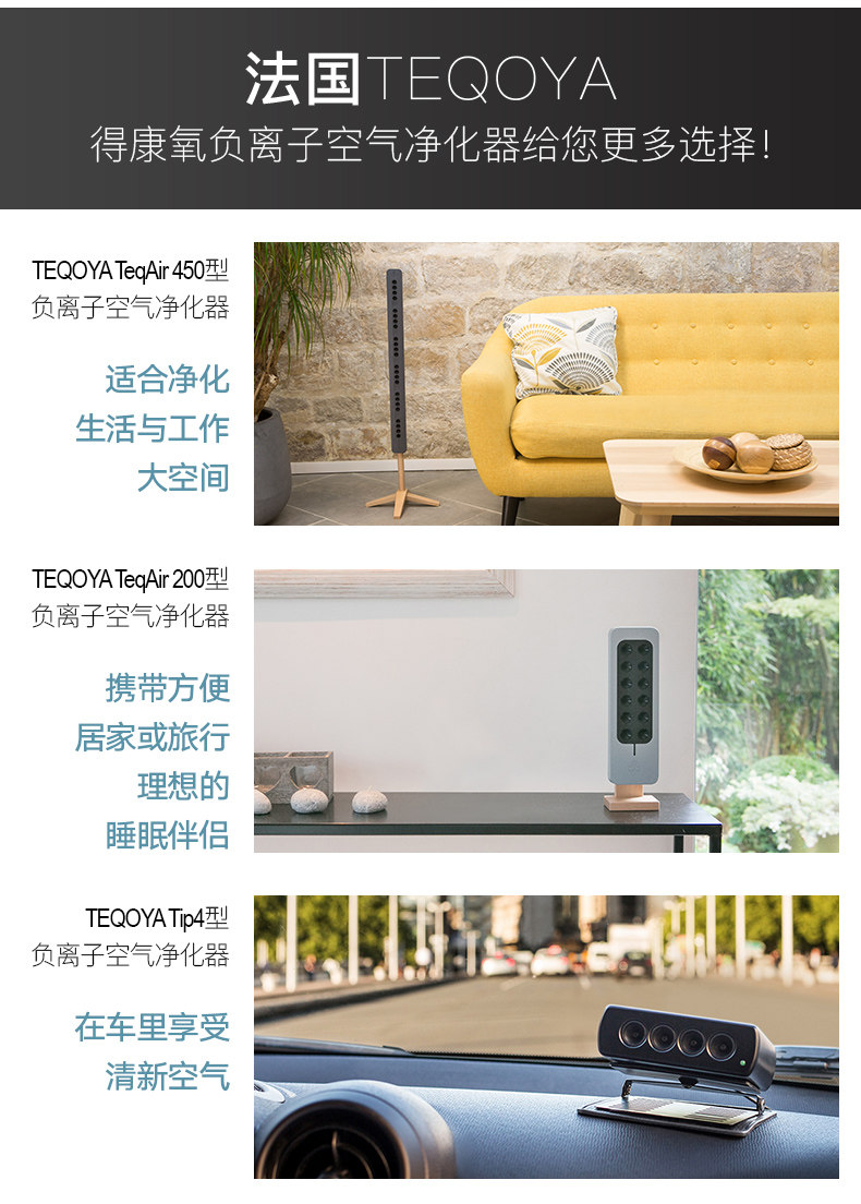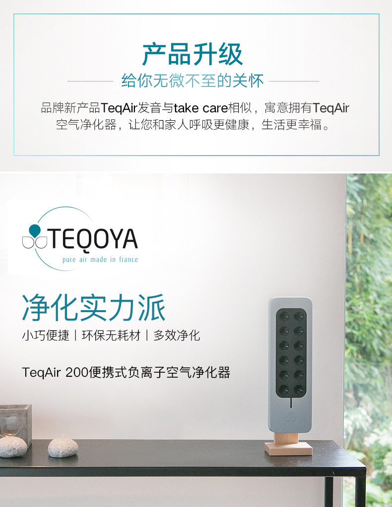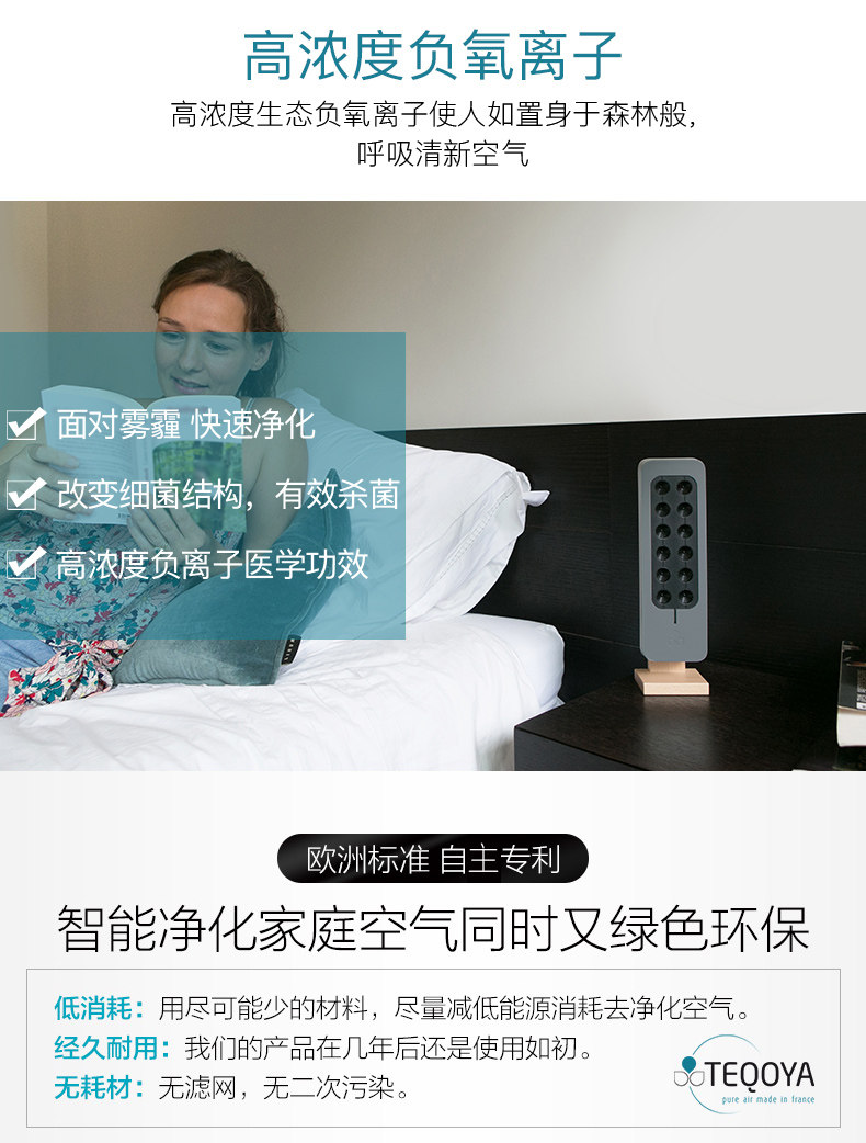 法国TEQOYA得康氧TeqAir 200零臭氧无耗材负离子空气净化器 直邮
