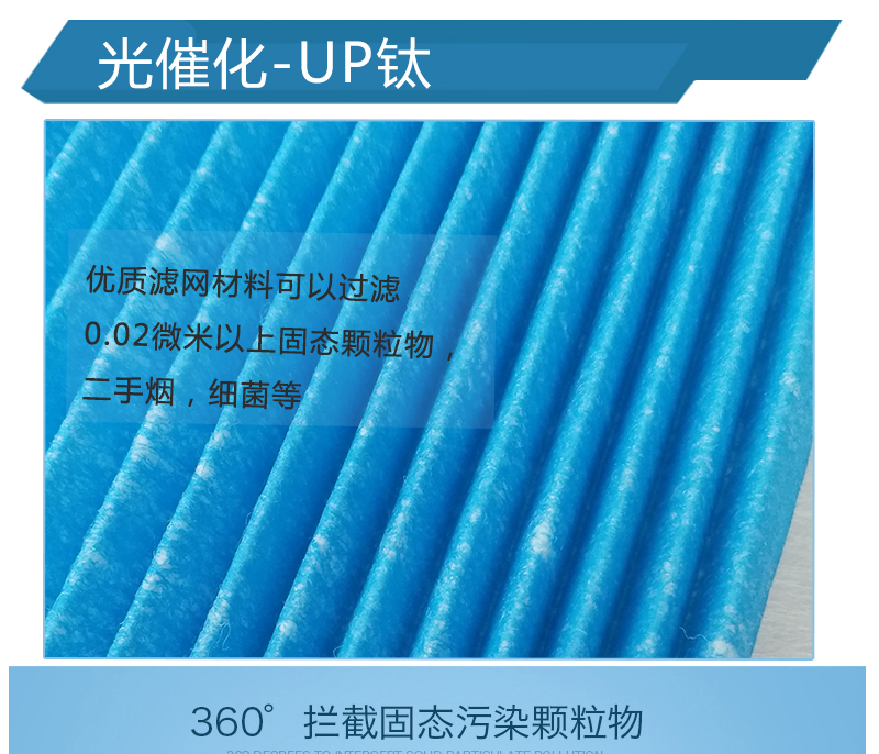 ③光催化UP钛金过滤网,吸附并分解异味,细菌。