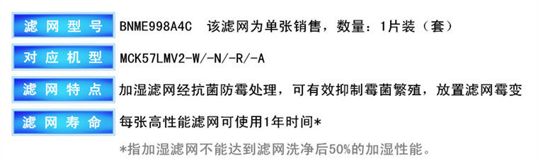 • 滤网型号:BNME998A4C