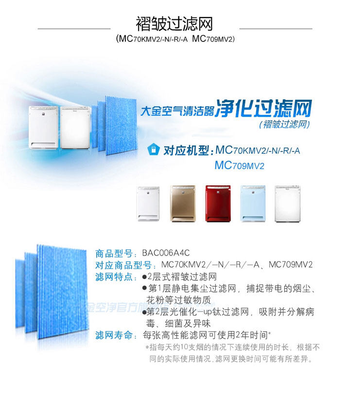 适用于大金MC70KMV2 MCK57LMV2 系列