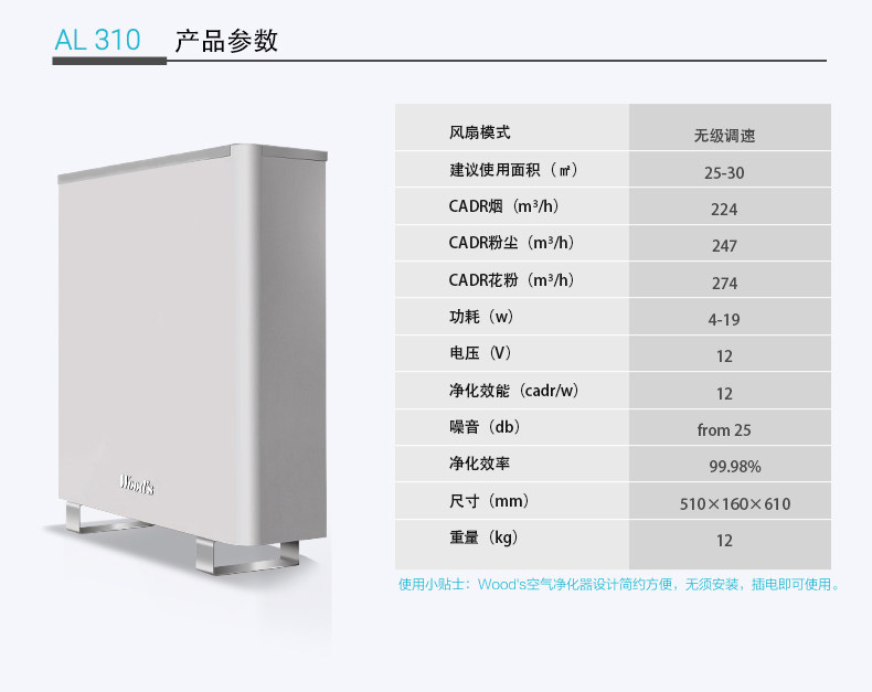 虽然我很爱国,但是我在空气净化方面仍然选择woods,这个空气净化器操作简单,只有一个机械旋钮,这是我的最爱,我不喜欢花里胡哨的功能,只要空气净化就足够了。
