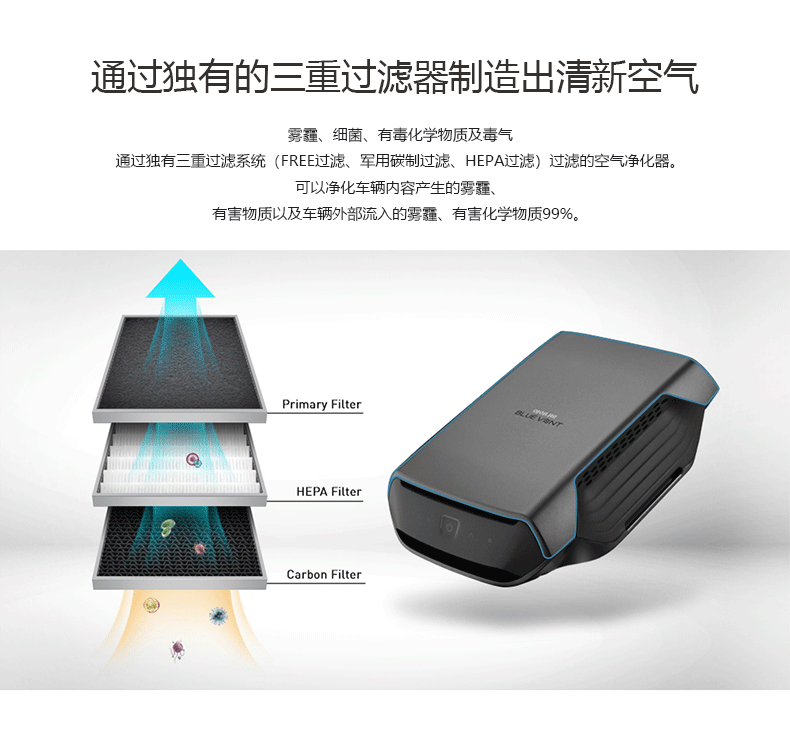 • 功能:消除异味过滤灰尘杀菌吸收TVOC气体