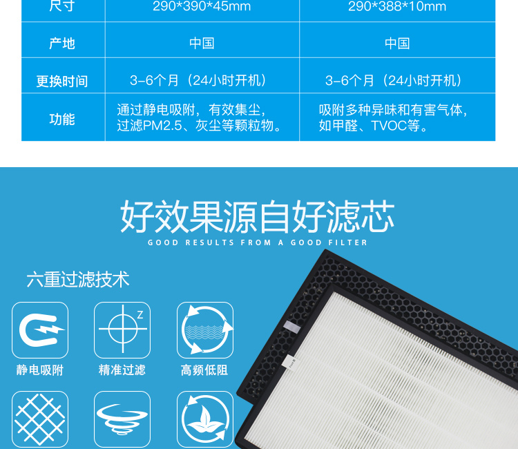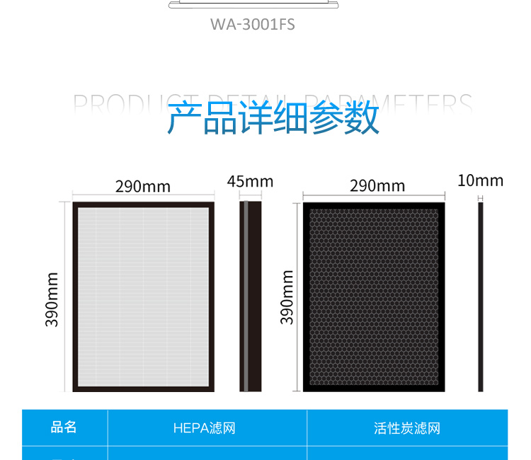 适配惠而浦WA-3001FS空气净化器过滤网除甲醛活性炭套装HEPA滤芯
