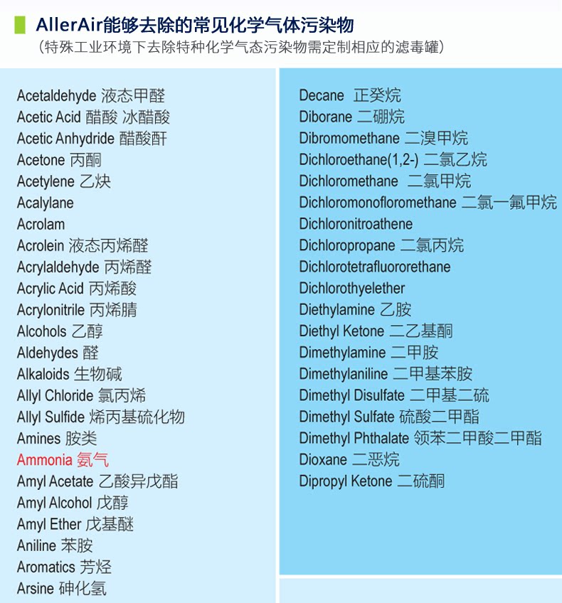 AllerAir工业空气净化器除甲醛氨氡氯气一二三氧化碳氮硫氢氟家用