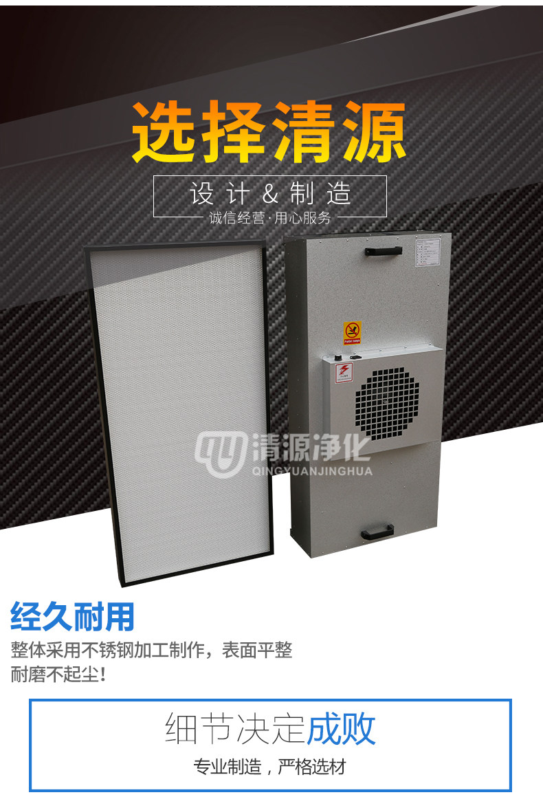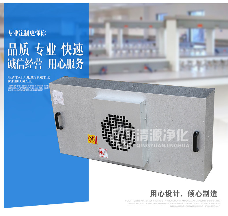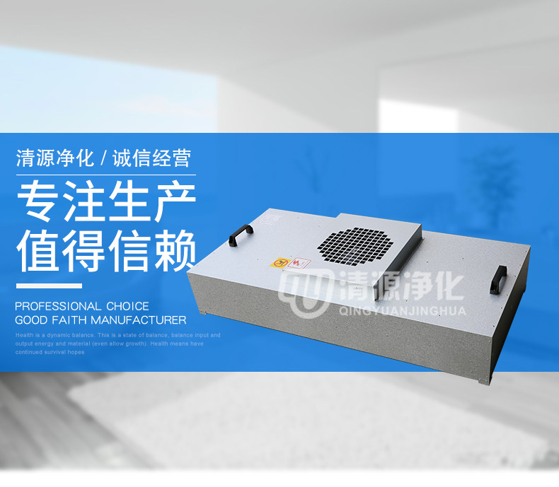 FFU广泛应用于洁净室、洁净工作台、洁净生产线、组装式洁净室和局部百级等应用场合。FFU设有初、高效两级过滤网。风机从FFU顶部将空气吸入并经初、高效过滤器过滤,过滤后的洁净空气在整个出风面以0.45M/S±20%的风速匀速送出。适用于在各种环境中获得高级别的洁净环境。它为不同尺寸大小,不同洁净度等级的洁净室、微环境提供高质量的洁净空气。