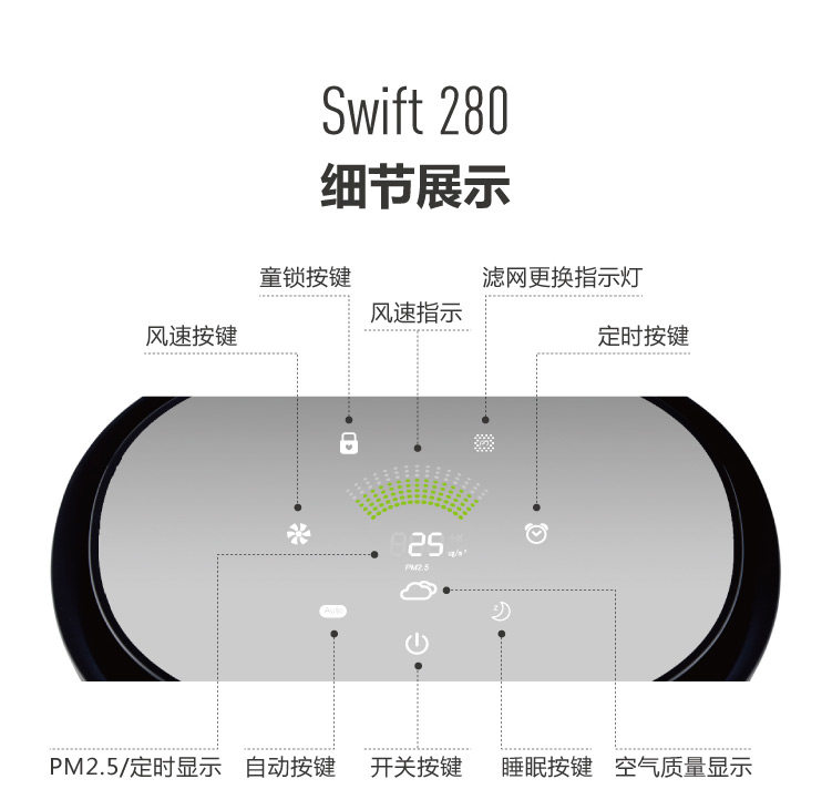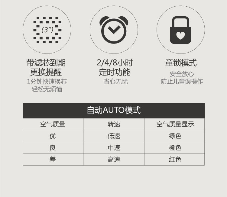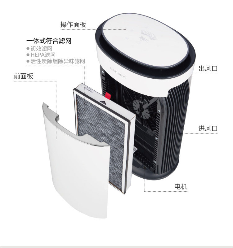 大品牌,产品质量做工很好,各种模式设计很人性化。刚到货就迫不急待地开机运行,低速模式很静音,高速模式风量很大,放在会议室大约二十分钟指示灯就变色啦。房间空气质量明显好转。选择的白色,外观高大上,价格也非常合适,除甲醛效果也很好。