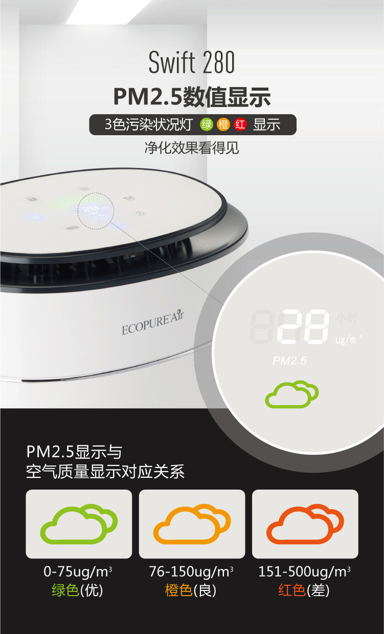办公室刚装修完,甲醛味比较重,又逢大雾霾,当机立断购买了空气净化器,外观大气,声音安静,刚开始是黄灯,一会变为蓝灯,目前来看可以,好用!