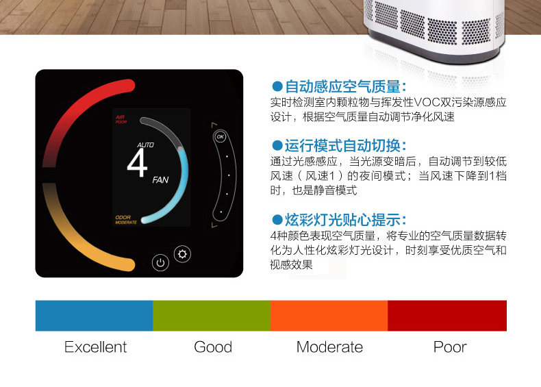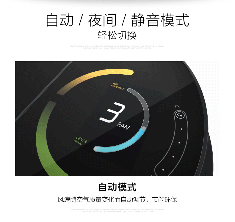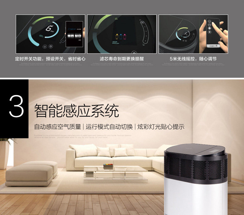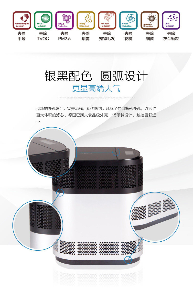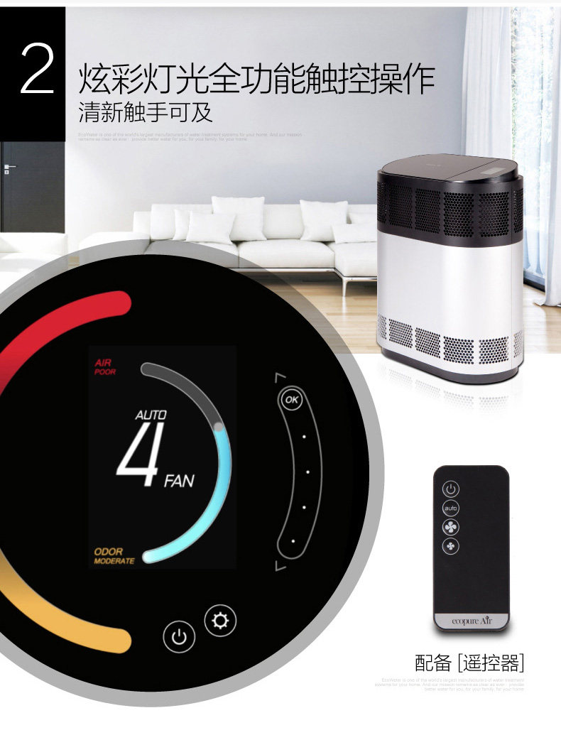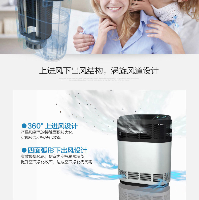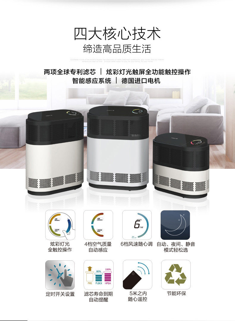 对比了很多家的参数和价格,最终选择了这款。到底是美国怡口的品质,高端大气有档次,做工细节都很好。价格虽不算便宜,但比起健康的生活环境根本不算什么,赶上活动恰巧买一送一,很是划算。开启后很短时间内空气质量就变为优了,太神速了!非常值得,墙裂推荐!