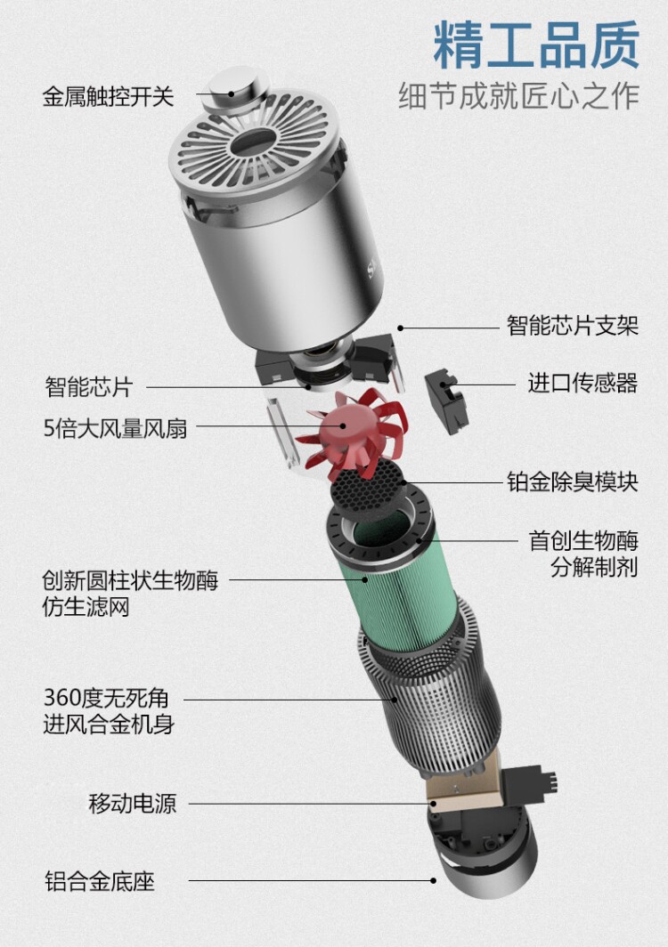 • 功能:消除异味 过滤灰尘 杀菌 吸收TVOC气体 芳香功能