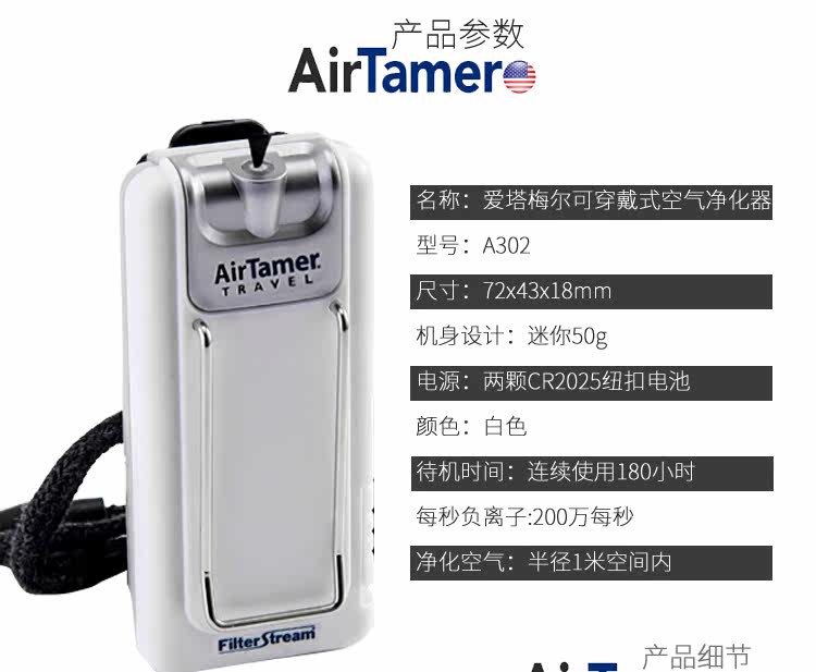 | 宝贝名称 | 爱塔梅尔可穿戴负离子空气净化器 |