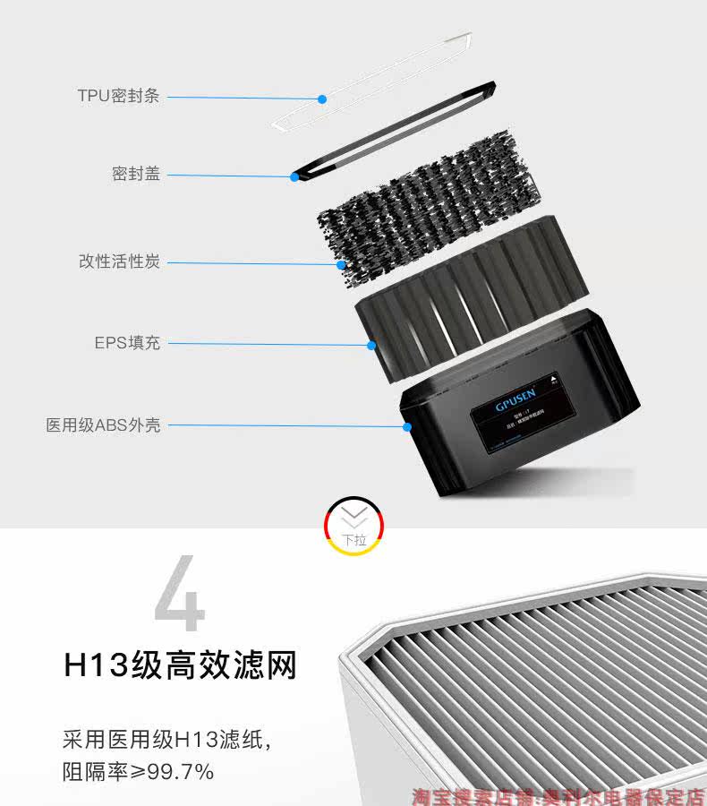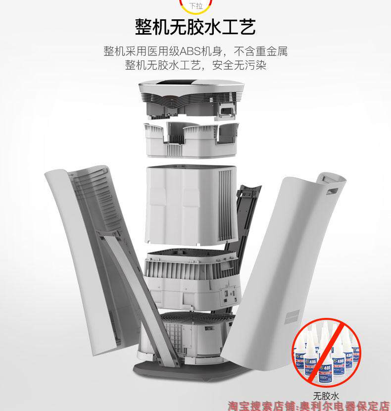• 工作原理:HEPASilent专利技术 活性炭 负离子 HEPA技术 紫外线 光触媒