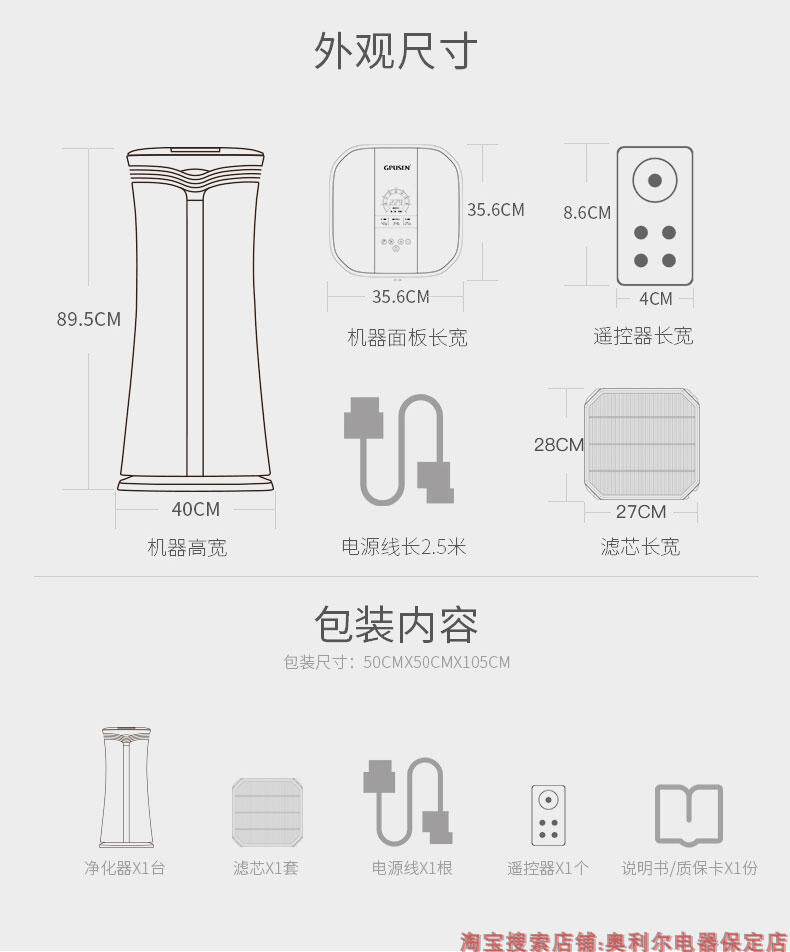 [奥利尔电器空气净化,氧吧]德国吉浦森空气净化器家用塔式除雾霾除月销量0件仅售8399元