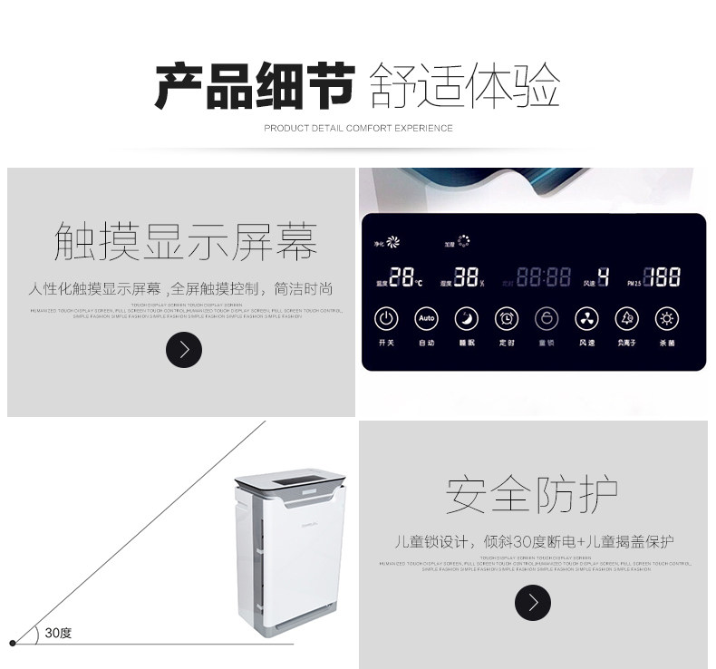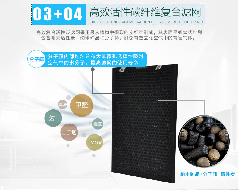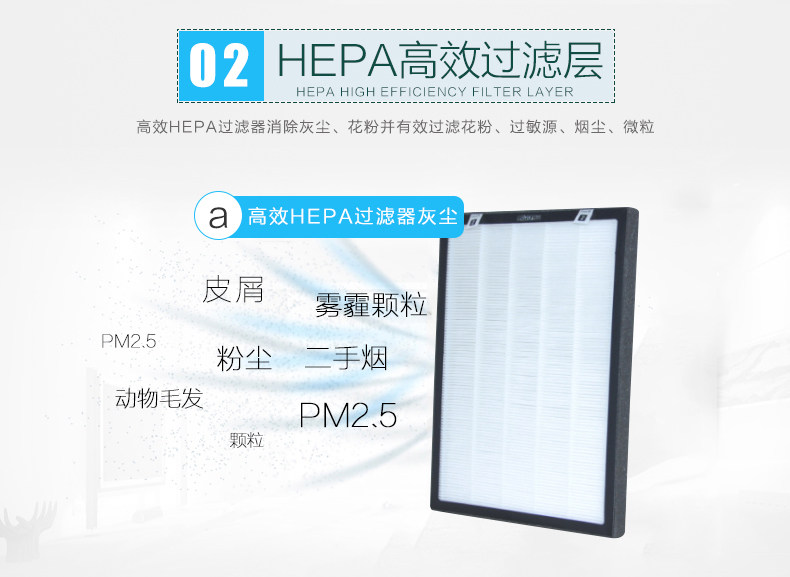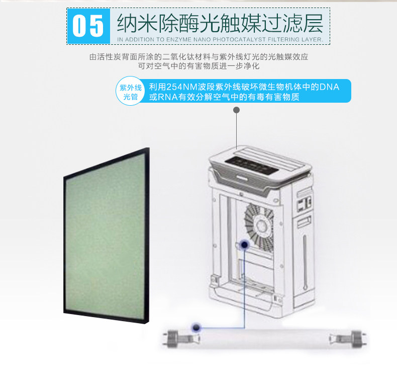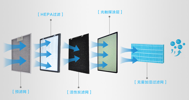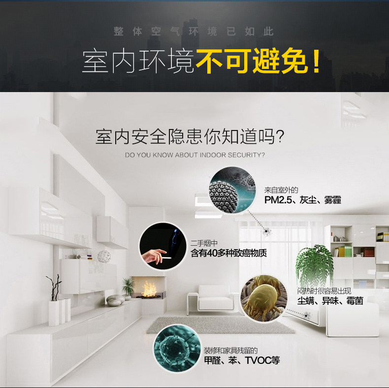 • 工作原理:HEPASilent专利技术 活性炭 负离子 HEPA技术 紫外线 光触媒