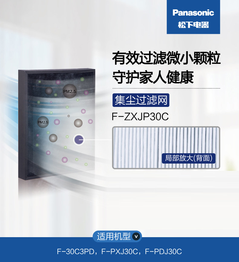 松下空气净化器原装过滤网F-ZXJP30C集尘过滤网。