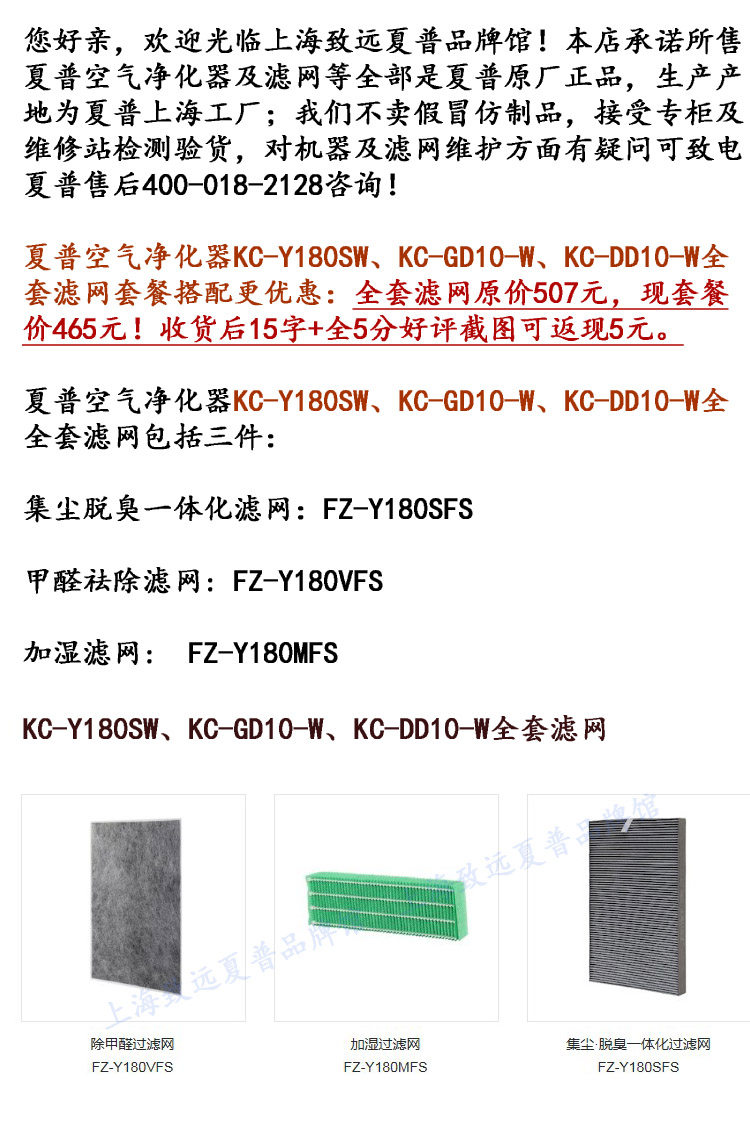 甲醛祛除滤网: FZ-Y180VFS