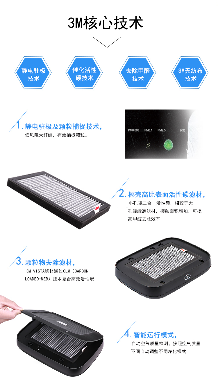 3m 38516车载净化器滤芯 车用空气净化器 38616净化器替换滤芯