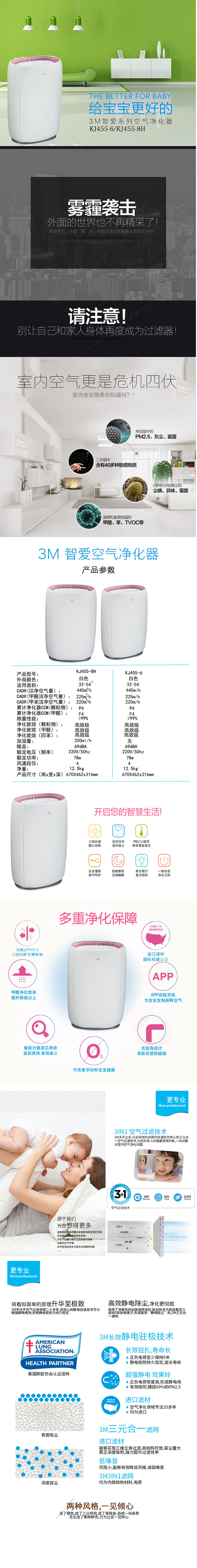 3M空气净化器智爱系列KJ455F-6/8带加湿智能wif除甲醛母婴机