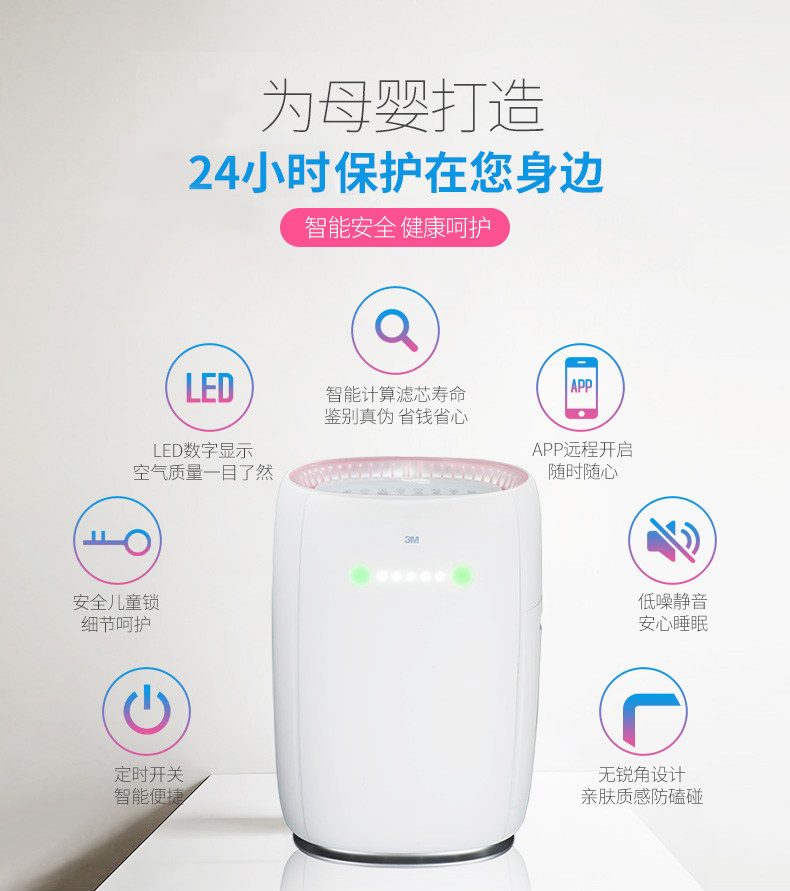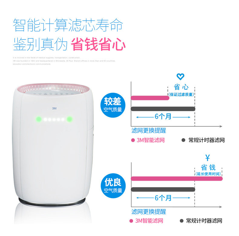 一直都是认准3M这个品牌,果然没有失望,功能很全面.同事还特的点了一根香烟测试,机器立马变色报警,要是再小巧一点就好了.老总说等办新办公室还来你家买净化器. 客服很认真,遇到问题咨询,不过多晚都有人联系解决.很专业.